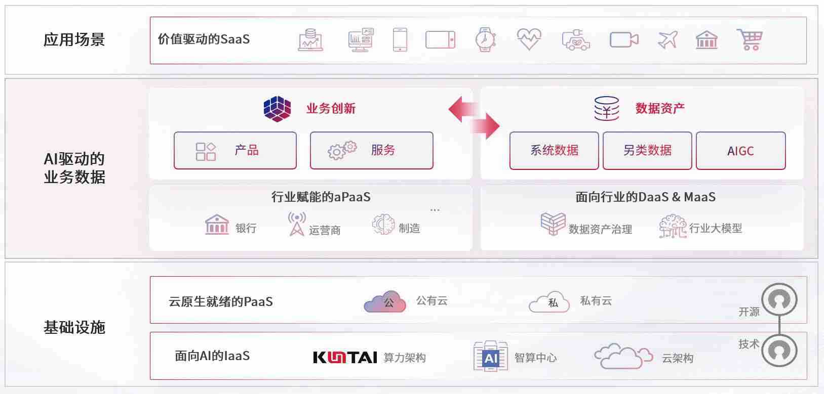 数字时代,,,,围绕企业数字化转型的关键要素,,,,988PAY数码开创性的提出数云融合战略和技术体系框架,,着力在云原生、、、、数字原生、、AI原生和信创产业上架构产品和服务能力,,,,为处在不同数字化转型阶段的快消零售、、汽车、、金融、、、医疗、、、政企、、教育、、、、运营商等行业客户提供泛在的敏捷IT能力和融合的数据驱动能力,,,构建跨界融合创新的数字业务场景和新业务模式,,,助力企业级客户建立面向未来的核心能力和竞争优势,,,全面推动社会的数字化、、智能化转型升级。。